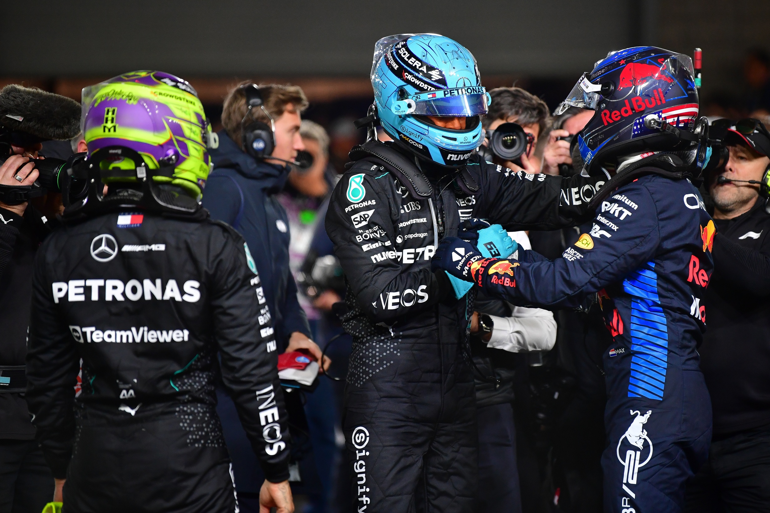 Mercedes driver George Russell won the Las Vegas Grand Prix, while teammate Lewis Hamilton finished second, giving Mercedes a 1-2 podium finish.